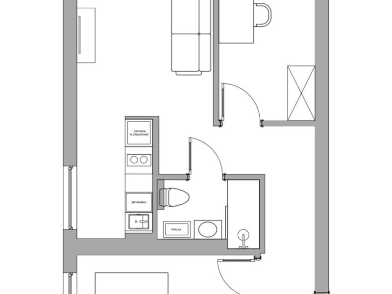 - kuchni z oknem i przejściem do salonu,