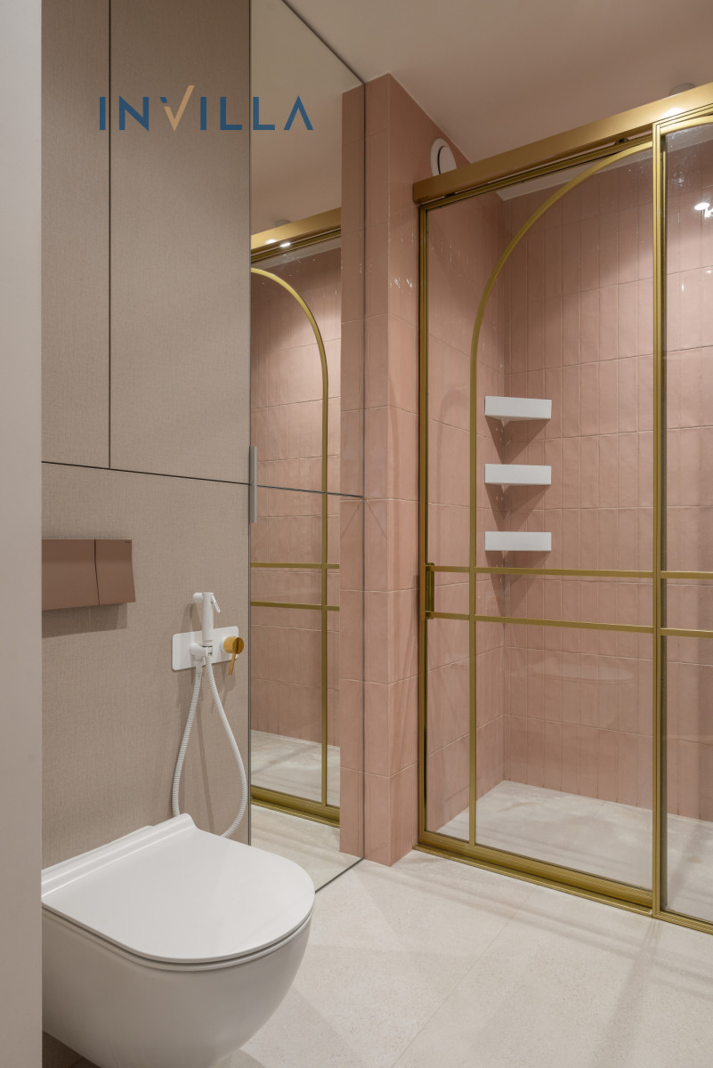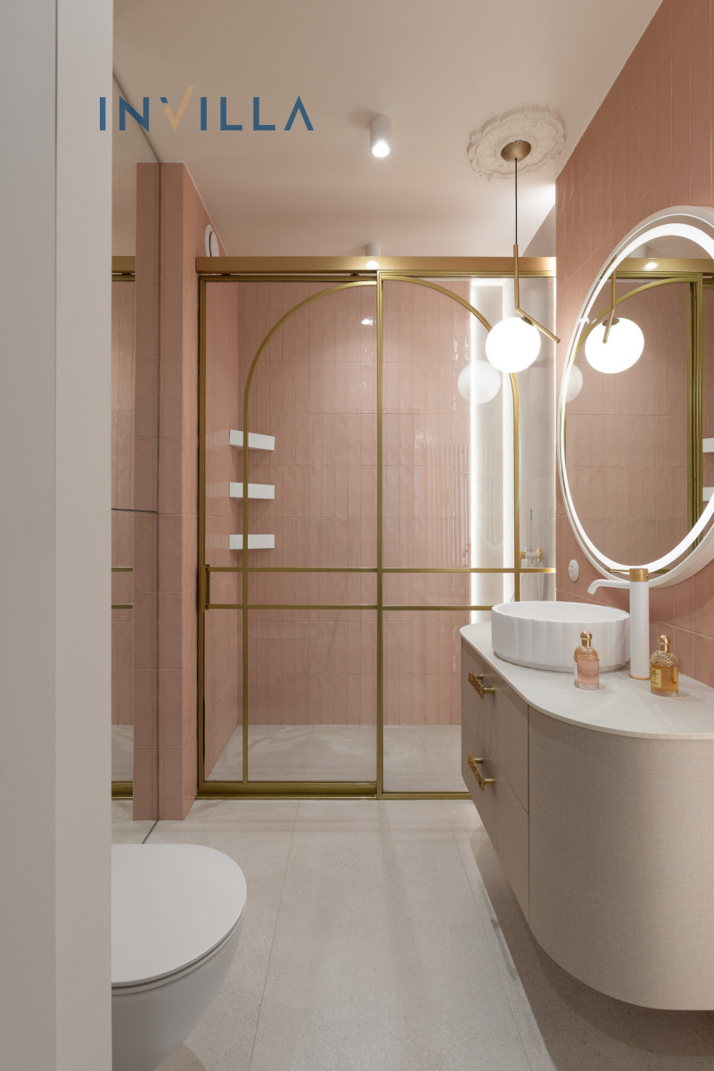 - łazienka z przestronnym prysznicem i efektownym lustrem,