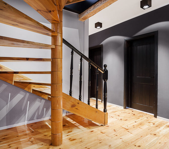 • korytarz z zabudową oraz schodami na drugą kondygnację.