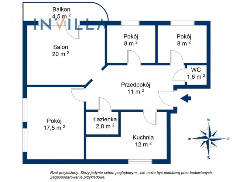 Na 78,70 m2 znajdują się następujące pomieszczenia: