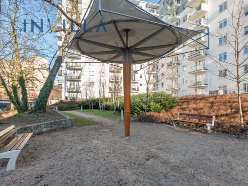 Mieszkanie znajduje się na 3 piętrze w budynku 9-piętrowym. Osiedle monitorowane, utrzymane w stanie bardzo dobrym. Wszechobecna zadbana zieleń, park z fontanną w centrum między budynkami. Kilka minut od domu znajduje się wejście bezpośrednio do lasu.