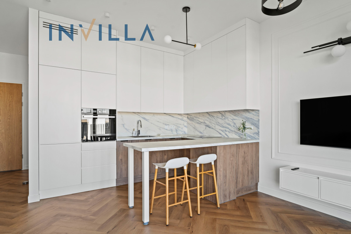 Apartament został zaprojektowany z dbałością o każdy detal i wykończony materiałami wysokiej jakości. Wszystkie zabudowy stolarskie wykonano na indywidualne zamówienie. Lokal jest w pełni wykończony i gotowy do zamieszkania.