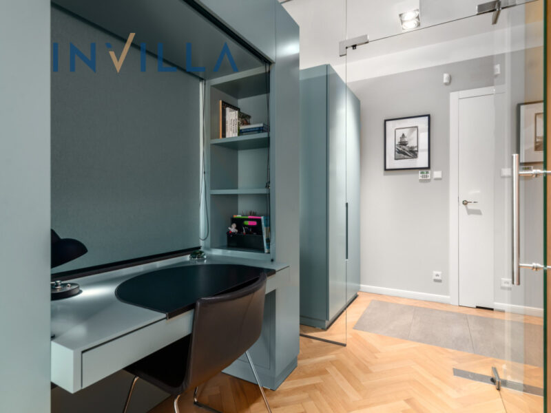 – przedpokój z wydzieloną przestrzenią do pracy (biurko w zabudowie),