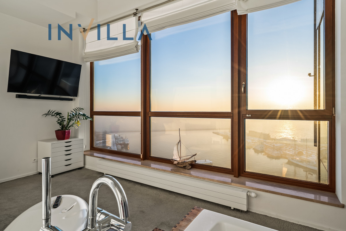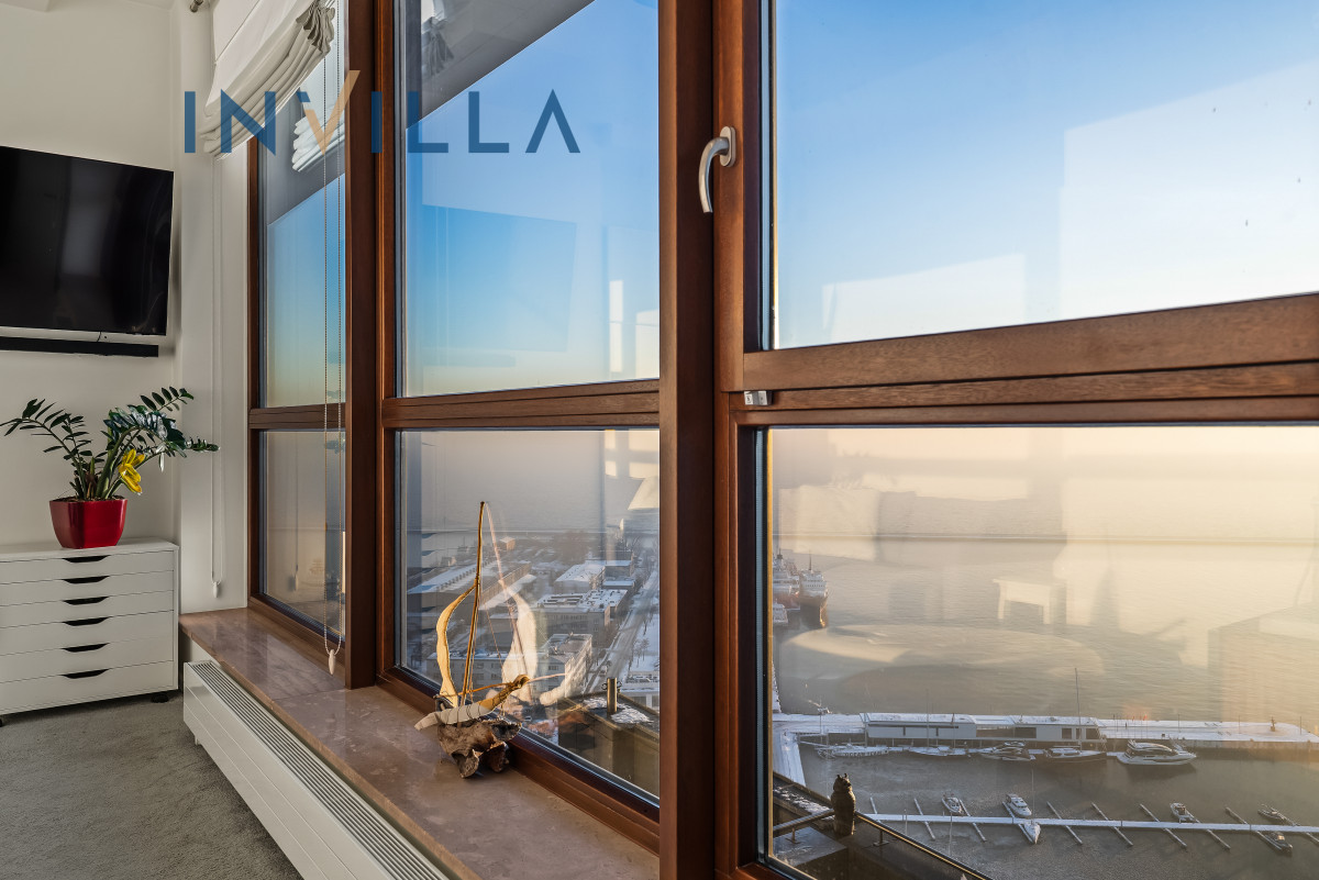 Panoramiczny widok na otwarte morze oraz port, jest widoczny niemal z każdego pomieszczenia. To jeden z tych apartamentów, w których widok staje się integralną częścią wnętrza i codziennego komfortu życia.