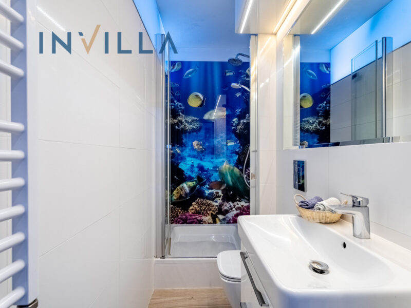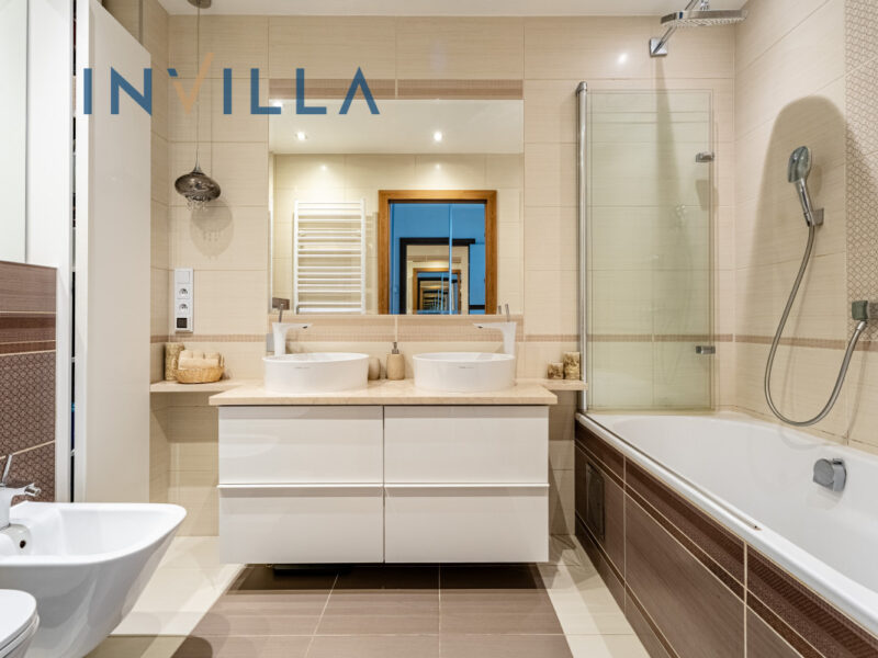 Dwie łazienki – w tym jedna przy głównej sypialni, bardzo prywatna, z wanną, zaprojektowana w eleganckim, ponadczasowym stylu, natomiast druga łazienka ulokowana jest przy pozostałych pokojach i wyposażona jest w prysznic.