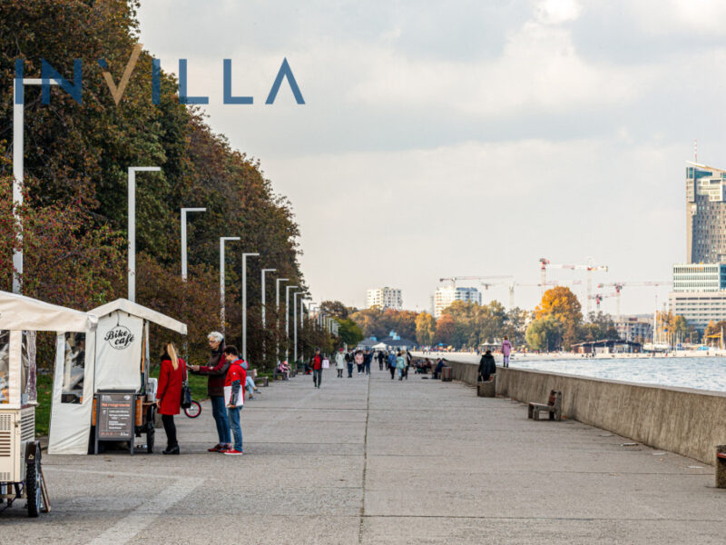 Mieszkanie znajduje się na IV piętrze w bloku, który otacza zieleń, a do plaży mamy zaledwie 500 m. W okolicy znajdziemy kawiarenki, sklepy, dwie elitarne szkoły średnie oraz Urząd Miasta. Jest to miejsce bardzo dobrze skomunikowane, ciche i oddalone od ruchliwych ulic.
