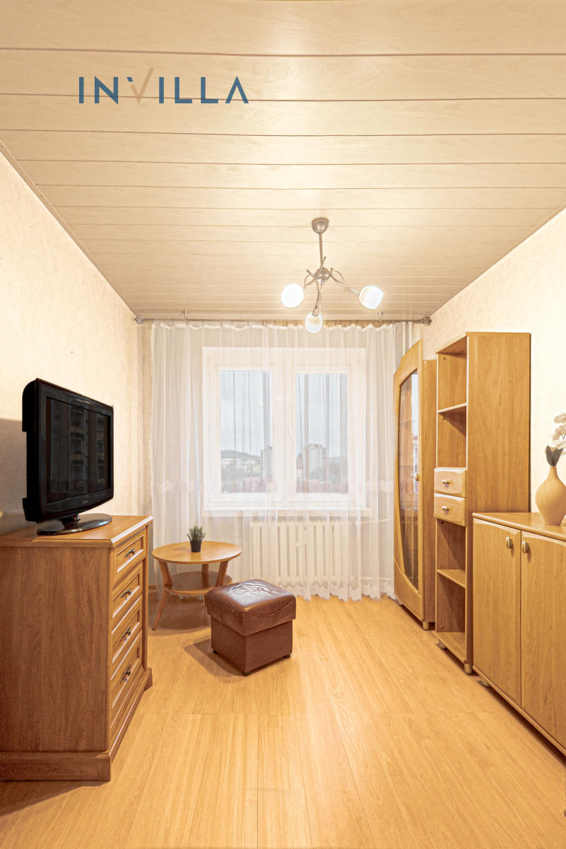 Centralną częścią mieszkania jest jasny salon z wyjściem na balkon o ekspozycji południowej – naturalna przestrzeń do odpoczynku z widokiem na okolicę.