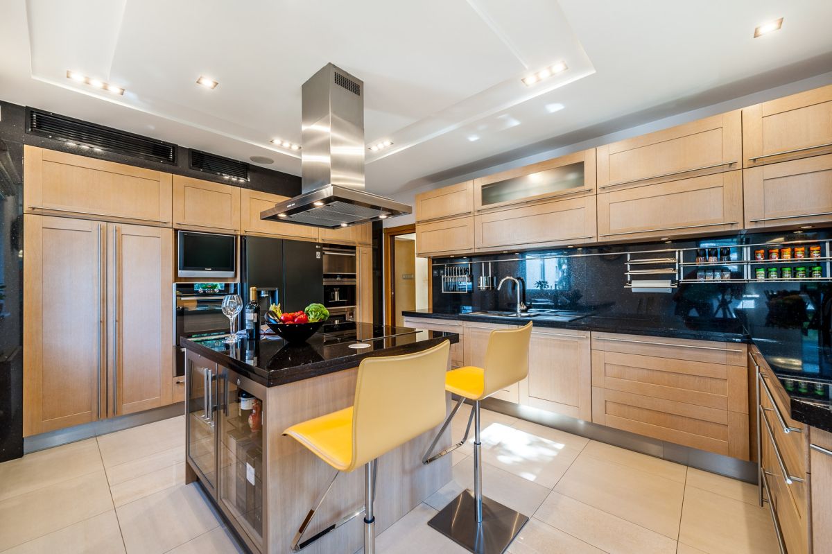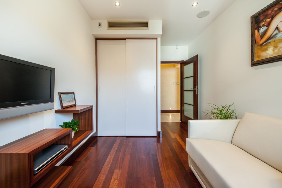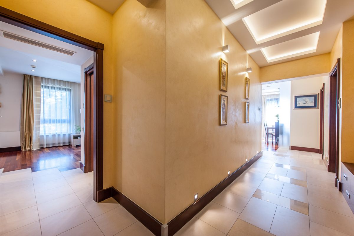 Elegancki apartament o powierzchni 132 metrów kwadratowych, położony na pierwszym piętrze. Główną część wnętrza stanowi przestronny salon, o południowej i zachodniej ekspozycji, z częścią wypoczynkową i jadalnianą oraz balkonem. Bezpośrednio obok znajduje się duża kuchnia, ze stylową wyspą i wysokiej jakości zabudowami, a także częścią dedykowaną pod codzienne spożywanie posiłków. Kolejnym atutem mieszkania jest sypialnia w konwencji tzw. master bedroom, z własną łazienką z jacuzzi, garderobą, balkonem oraz wydzieloną częścią do pracy. Dopełnieniem całości jest pokój gościnny, druga łazienka z częścią gospodarczą oraz spinający całość przestronny korytarz, będący osią komunikacyjną całego mieszkania. Wnętrza wykonane z dbałością o detale, z wysokiej jakości materiałów, przy jednoczesnym nacisku kładzionym na wysoką funkcjonalność. Apartament posiada system klimatyzacji, ogrzewanie podłogowe, rozbudowany system oświetlenia oraz wiele innych udogodnień. Na podłogach włoski gres, drewno Jatoba oraz Merbau. Kuchnia drewniana, w pełnej zabudowie ze sprzętami Siemens, Electrolux oraz Liebherr, z granitowym wykończeniem cokołów i blatów.