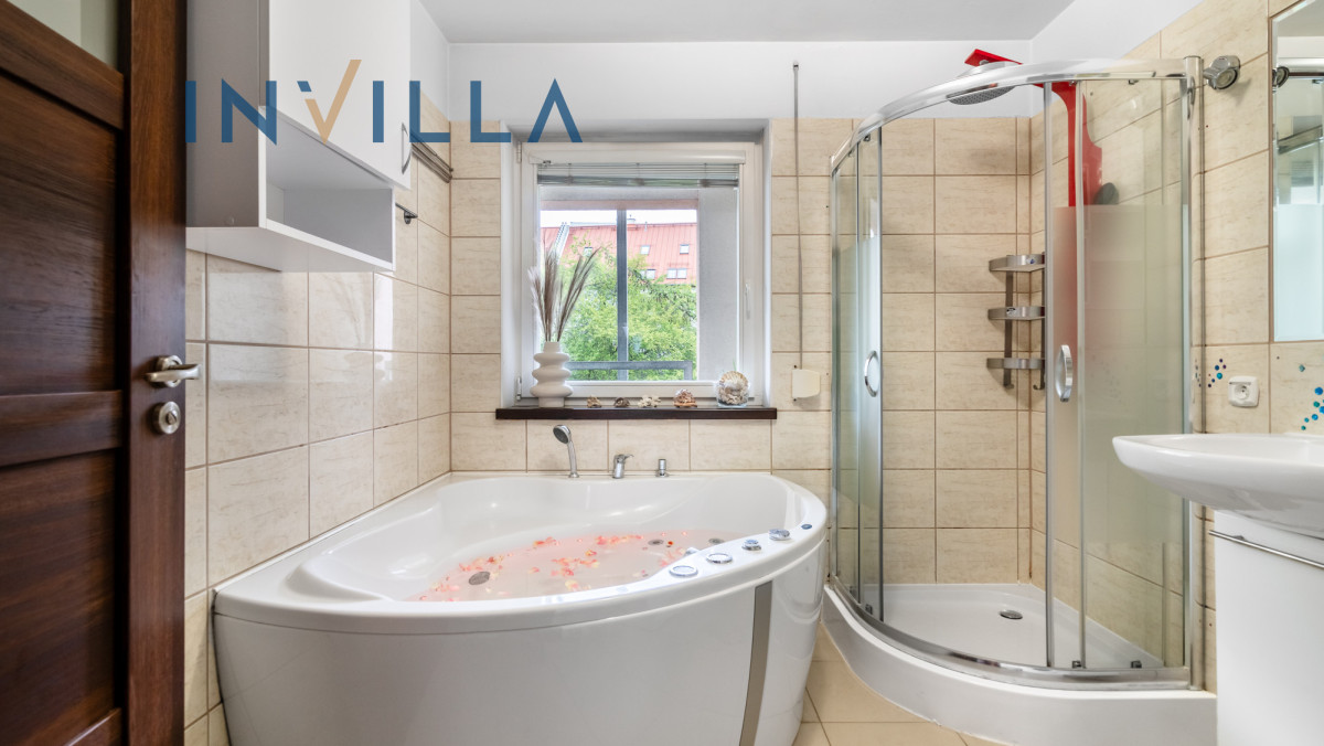 – łazienki z dwuosobową wanną z hydromasażem oraz osobnym prysznicem