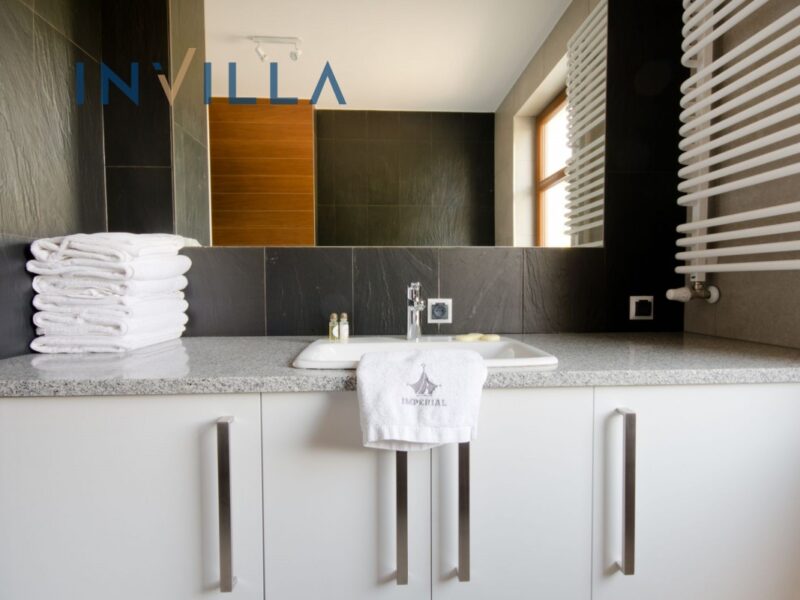 Apartament składa się w salonu, z którego przechodzimy do części kuchennej, dwóch wygodnych sypialni i dużej łazienki. Z salonu wychodzimy na słoneczny balkon. Dodatkowo jedna z dwóch sypiani posiada własny wygodny balkon. Da wygody, w łazience znajdziemy zarówno wannę jak i kabinę prysznicową.