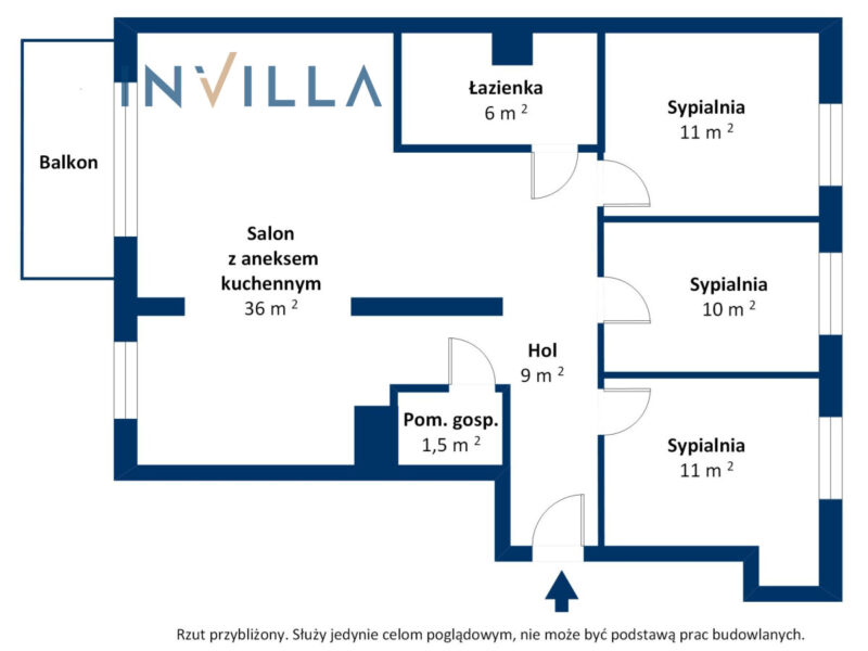 Układ pomieszczeń daje ogromne możliwości aranżacyjne – trzy niezależne sypialnie, przestronny salon z aneksem kuchennym i wyjściem na słoneczny balkon oraz garderoba z pralnią (z opcją urządzenia drugiej łazienki).