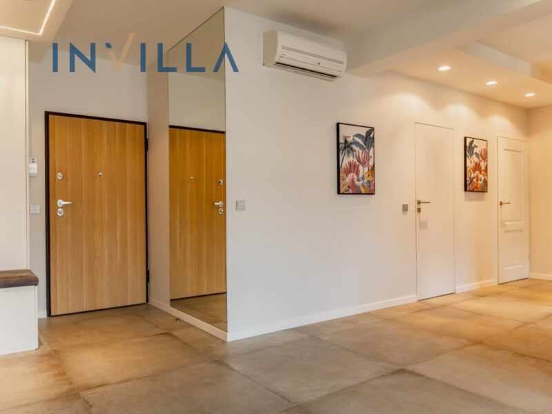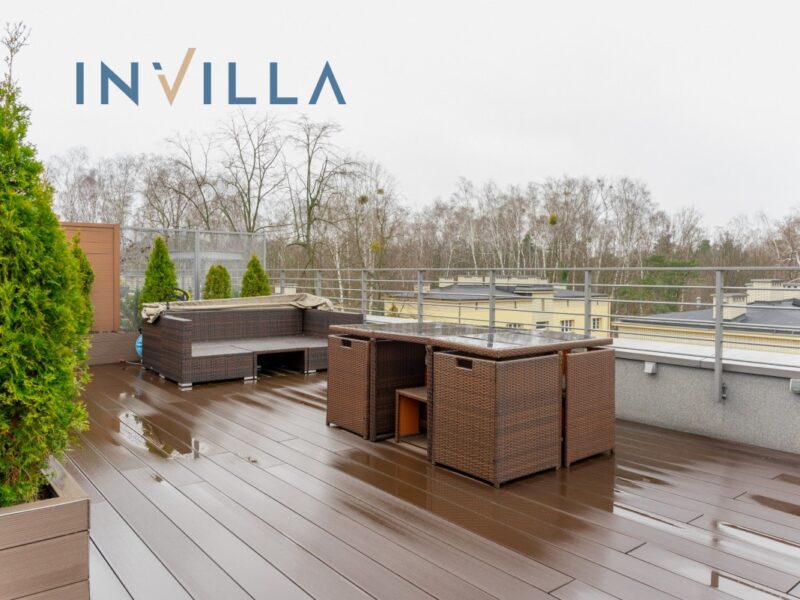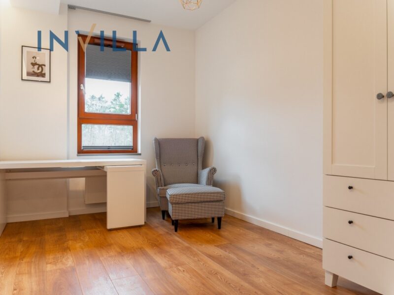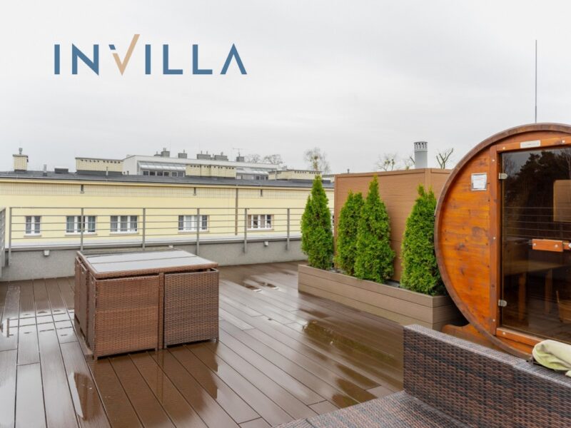 Ogromnym atutem nieruchomości jest bardzo duży taras, na którym znajdują się m.in. dużo zieleni i krzewów, sauna z balią i rodzinny stół ogrodowy z miejscem na grilla. Sam apartament to ponad 82 m2 powierzchni, na którą składa się przestronny salon połączony z częściowo otwartą kuchnią, 2 sypialnie (jedna z dużą garderobą) i duża łazienka (z wolnostojącą wanną i kabiną prysznicową). Przestrzeń została bardzo funkcjonalnie zaprojektowana i zadbano o każdy detal. W ścianach poukrywano liczne zabudowy i szafy, dzięki czemu jest to idealne miejsce do życia dla 3-4 osobowej rodziny. Całości dopełnia miejsce parkingowe w hali garażowej oraz ogólnodostępne naziemne miejsca parkingowe na terenie zamkniętym.