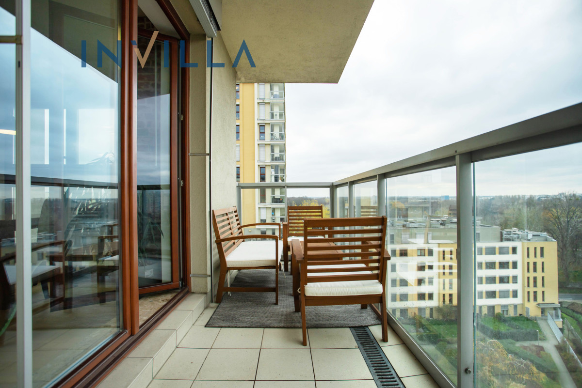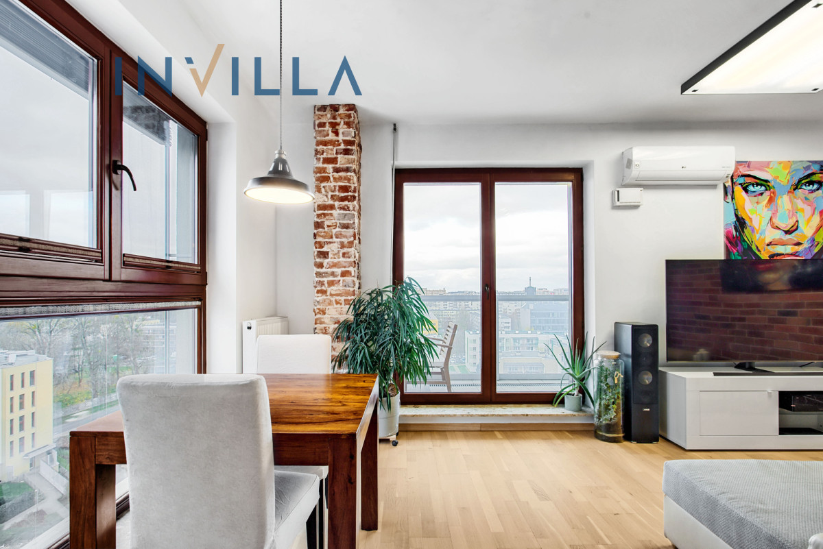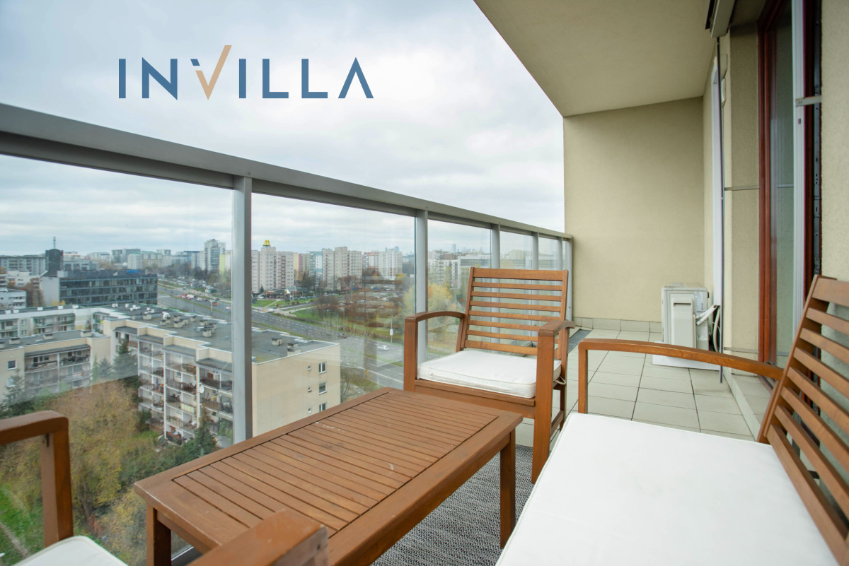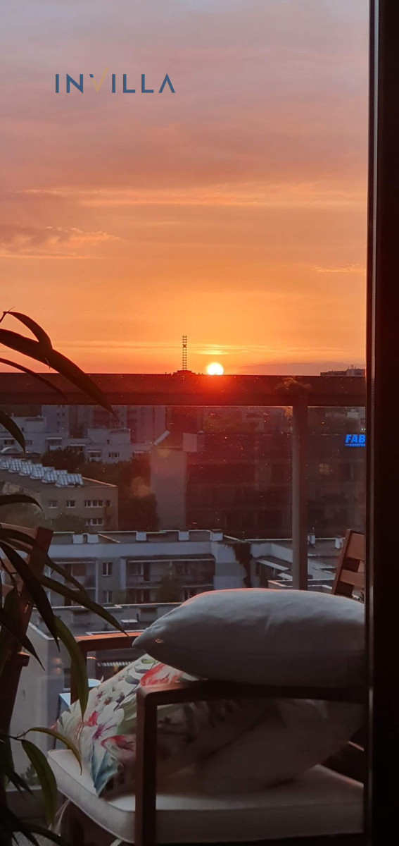 Oferujemy przestronne mieszkanie o powierzchni prawie 65 m², usytuowane na 9. piętrze (przedostatnia kondygnacja), dzięki temu jest bardzo słoneczne z ekspozycją południowo-zachodnią. Serce apartamentu to salon połączony z aneksem kuchennym o powierzchni około 25 m², z którego jest wyjście na duży balkon (ok. 8 m²). Balkon zapewnia piękny widok na zieleń oraz panoramę centrum Warszawy.