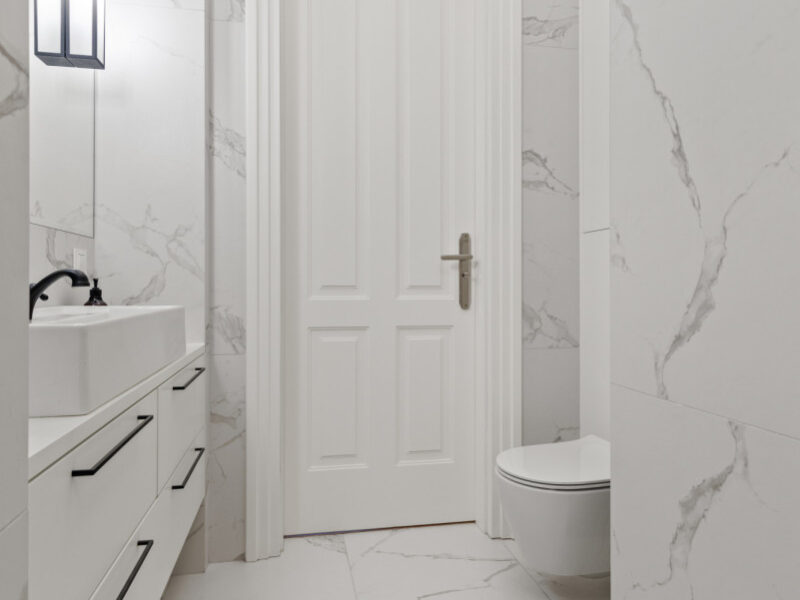 Wnętrza wykończone są z dbałością o najdrobniejsze detale, używając materiałów najwyższej jakości. Zastosowano produkty renomowanych światowych marek, które gwarantują trwałość, estetykę i luksusowy wygląd wykończenia ścian, podłóg oraz armatury sanitarnej. Nowoczesne rozwiązania technologiczne są subtelnie wkomponowane, zapewniając wygodę użytkowania przy zachowaniu stylu i klasy.