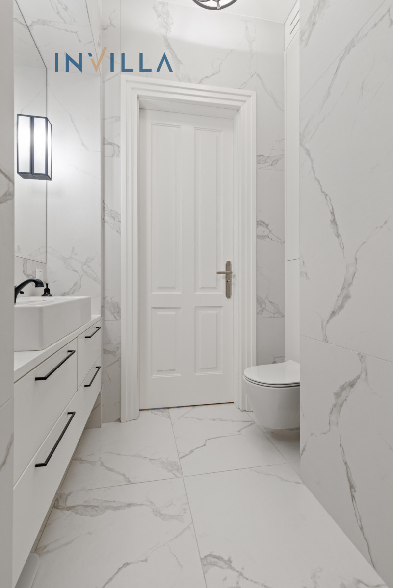 Wnętrza wykończone są z dbałością o najdrobniejsze detale, używając materiałów najwyższej jakości. Zastosowano produkty renomowanych światowych marek, które gwarantują trwałość, estetykę i luksusowy wygląd wykończenia ścian, podłóg oraz armatury sanitarnej. Nowoczesne rozwiązania technologiczne są subtelnie wkomponowane, zapewniając wygodę użytkowania przy zachowaniu stylu i klasy.
