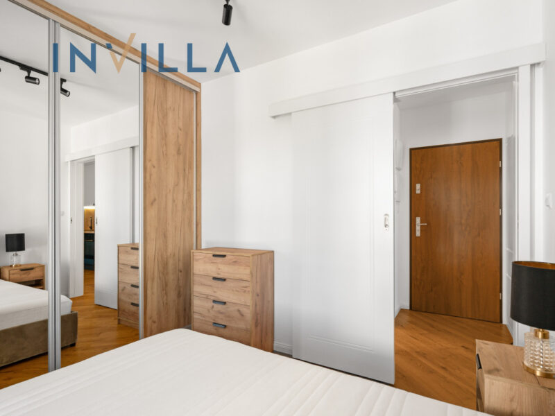 Mieszkanie o powierzchni 33 m2 jest w pełni wyposażone i gotowe do wprowadzenia. Posiada funkcjonalny rozkład. Przestronny pokój dzienny z aneksem kuchennym oraz wyjściem na kameralny balkon, który dzięki dużym przeszkoleniom, stanowi przedłużenie salonu oraz miejsce do odpoczynku w popołudniowym słońcu. Sypialnia z dużą szafą w zabudowie i łóżkiem. Łazienka z kabiną prysznicową oraz pralko-suszarką. W całym mieszkaniu na podłogach deska dębowa.