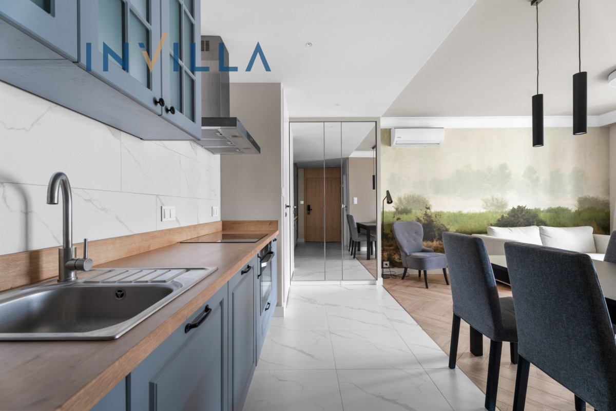 • Mieszkanie w pełni wyposażone w sprzęt RTV i AGD (klimatyzacja, pralka, zmywarka, płyta indukcyjna, piekarnik, telewizor).