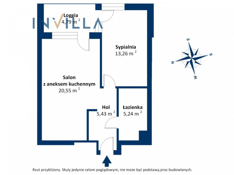 • salon z aneksem kuchennym i wyjściem na balkon,