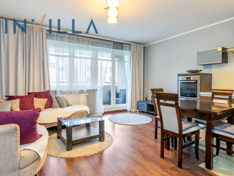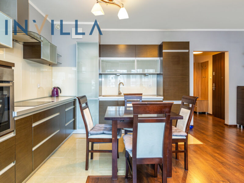 Mieszkanie znajduje się na 1 piętrze w budynku 4-piętrowym. Osiedle monitorowane, utrzymane w stanie bardzo dobrym. Wszechobecna zadbana zieleń, park z fontanną w centrum między budynkami. Kilka minut od domu znajduje się wejście bezpośrednio do lasu. W bliskim sąsiedztwie liczne sklepy i punkty usługowe. Mieszkanie składa się z dużego pokoju z aneksem kuchennym, 2 sypialni, łazienki, WC i balkonu. Do mieszkania przynależy jedno miejsce parkingowe w hali garażowej.
