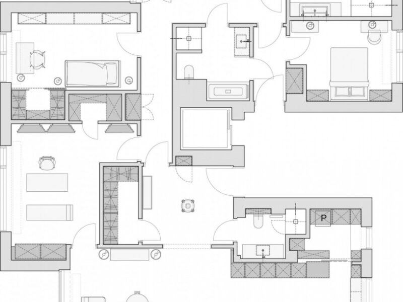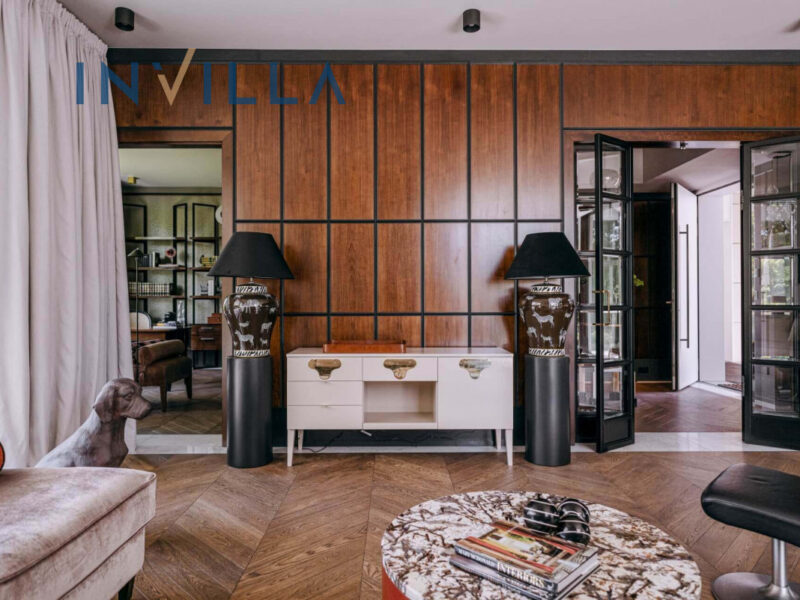 Apartament ma powierzchnię 207 m2, urządzony został w najwyższym z możliwych standardów (w tym m.in. meble na zamówienie, kamień naturalny, na podłogach deska drewniana itp.).