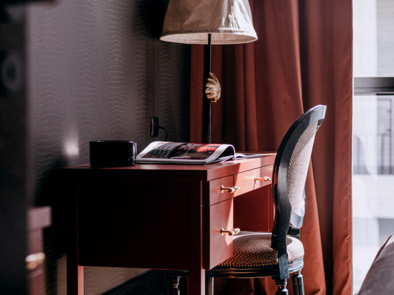 • gabinet z oknami otwieranymi na zieloną scenerię i ukrytą garderobą pomocniczą
