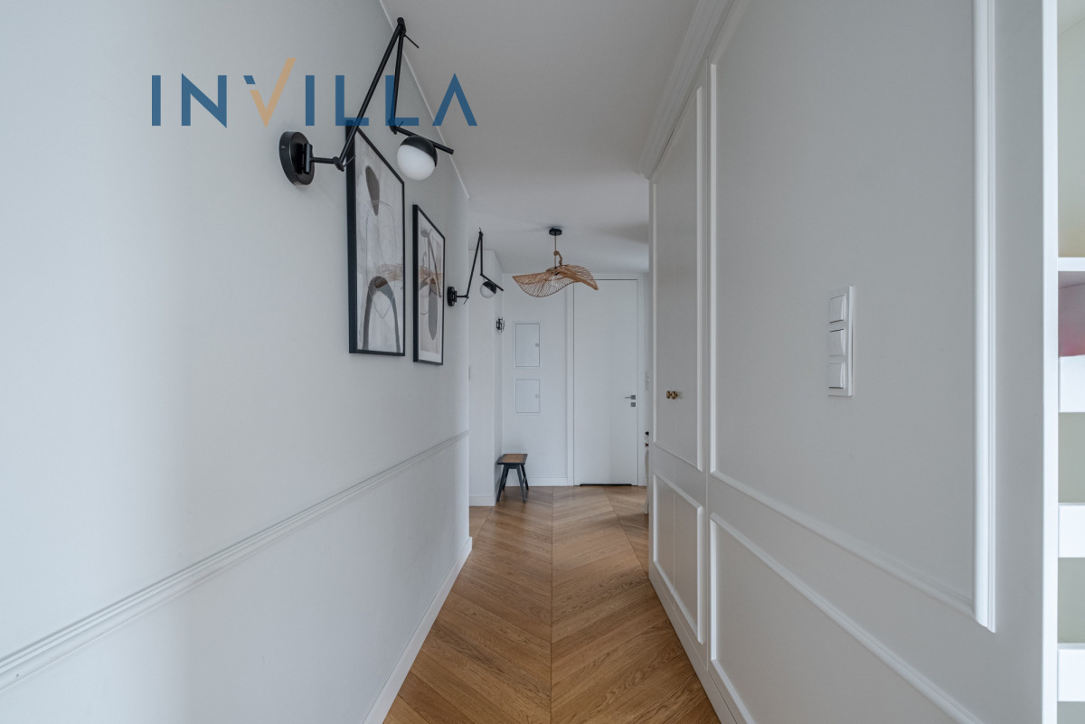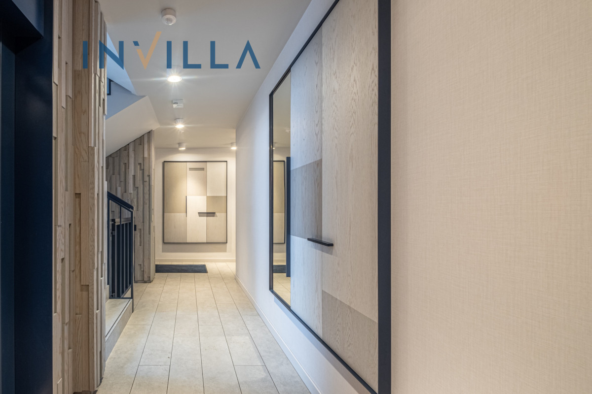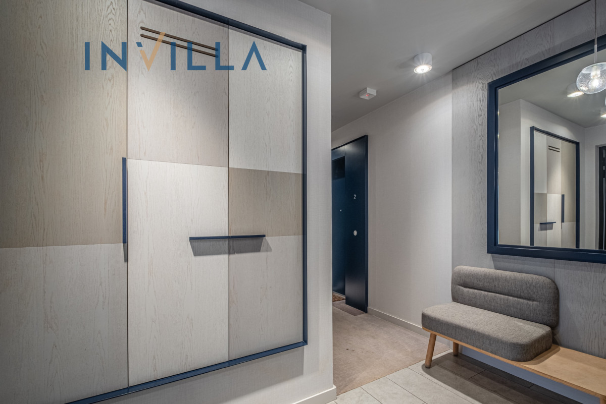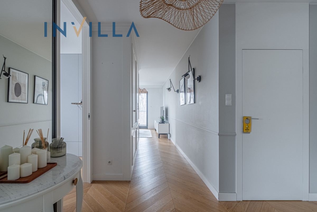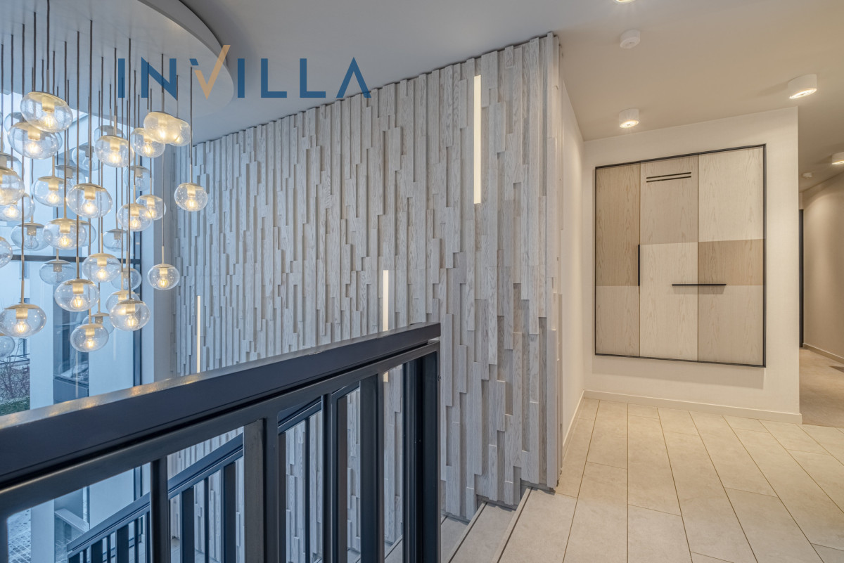 Cały apartament został starannie zaprojektowany z dbałością o każdy detal, a do jego wykończenia zostały użyte bardzo dobrej jakości materiały. Wszystkie zabudowy stolarskie zostały wykonane na specjalne zamówienie. Na dodatkową uwagę zasługują wysokość pomieszczeń i duże przeszklenia, co gwarantuje komfort mieszkańcom.