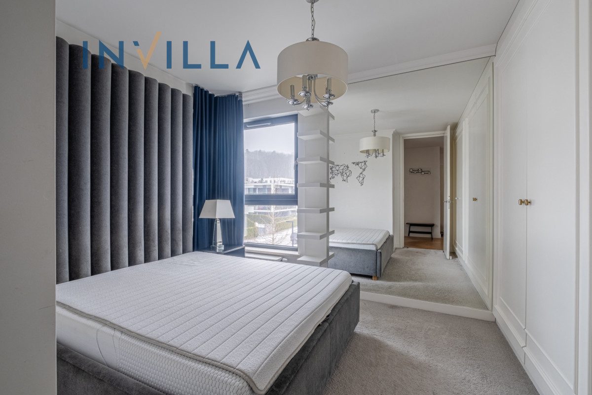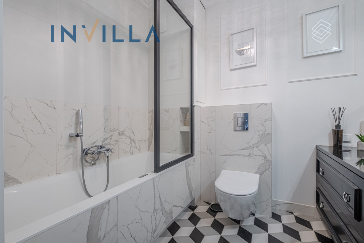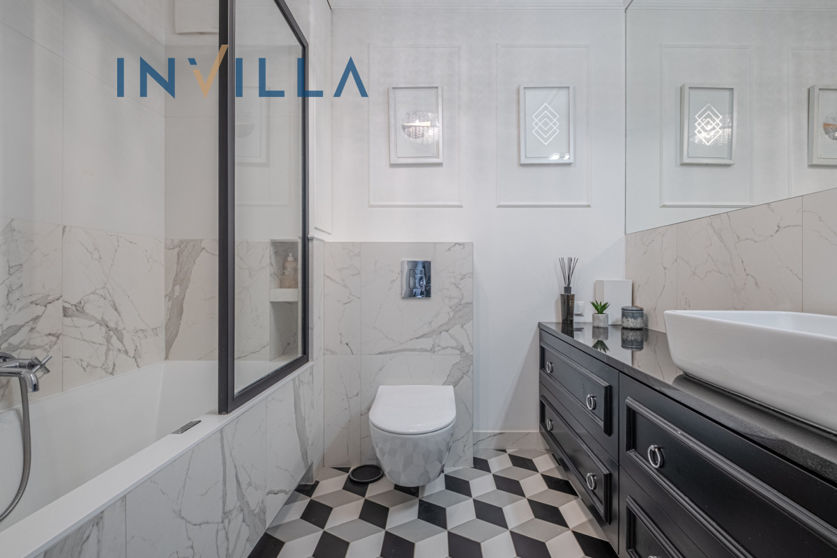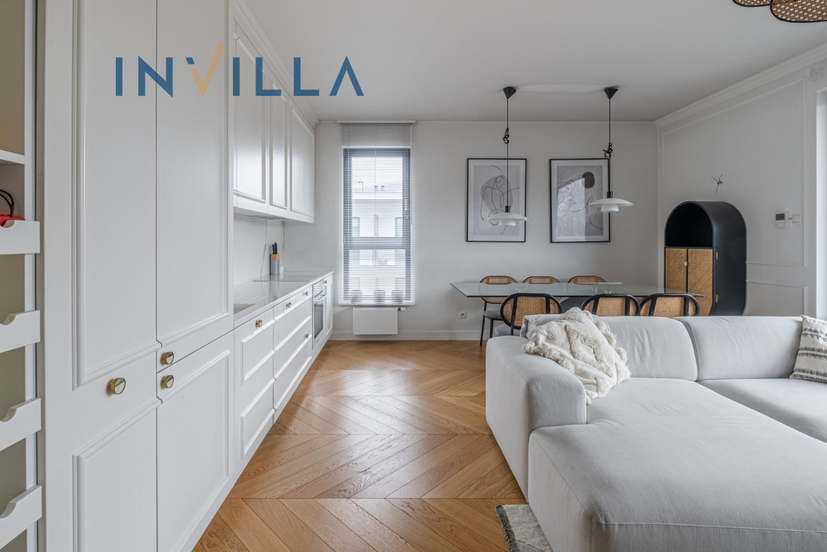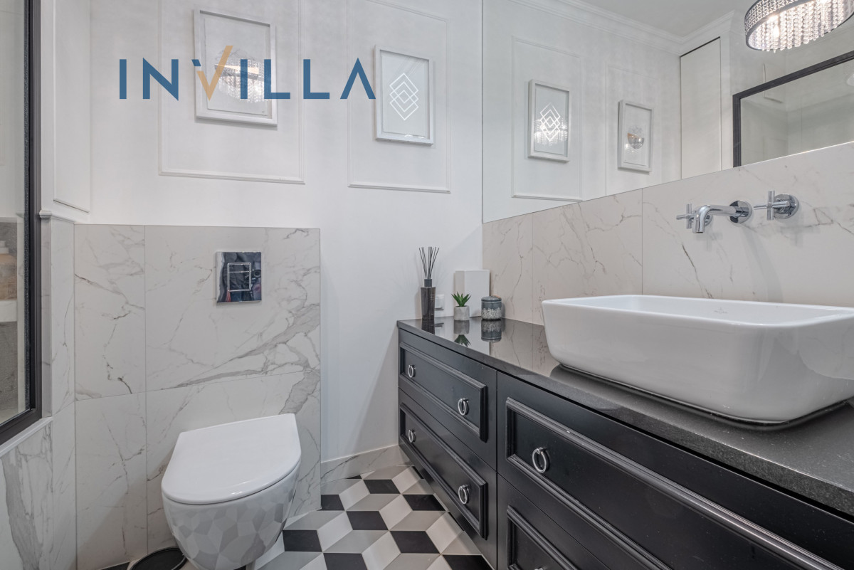Cały apartament został starannie zaprojektowany z dbałością o każdy detal, a do jego wykończenia zostały użyte bardzo dobrej jakości materiały. Wszystkie zabudowy stolarskie zostały wykonane na specjalne zamówienie. Na dodatkową uwagę zasługują wysokość pomieszczeń i duże przeszklenia, co gwarantuje komfort mieszkańcom.