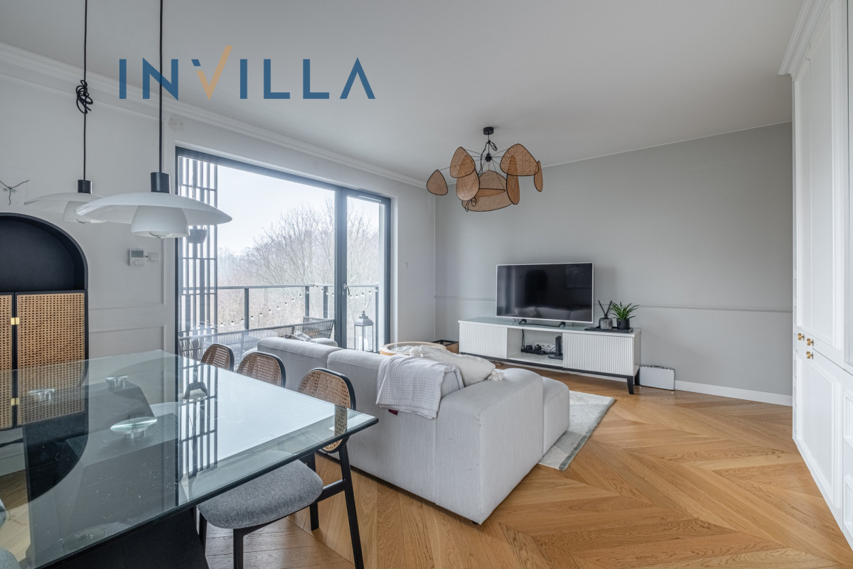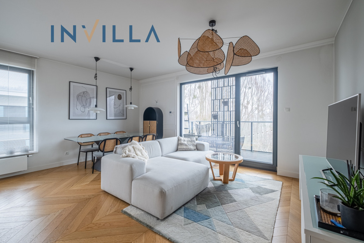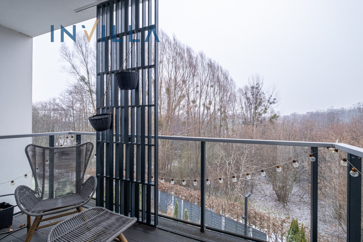 Apartament o powierzchni ok. 70 m2 mieści się na drugim piętrze w kameralnym dwupiętrowym budynku z windą, a jego atutem jest prywatność i przestrzeń za oknem.