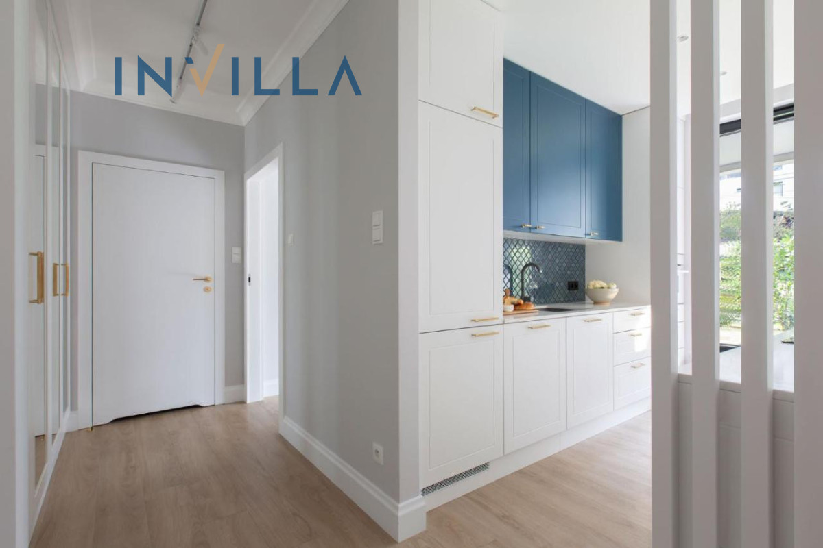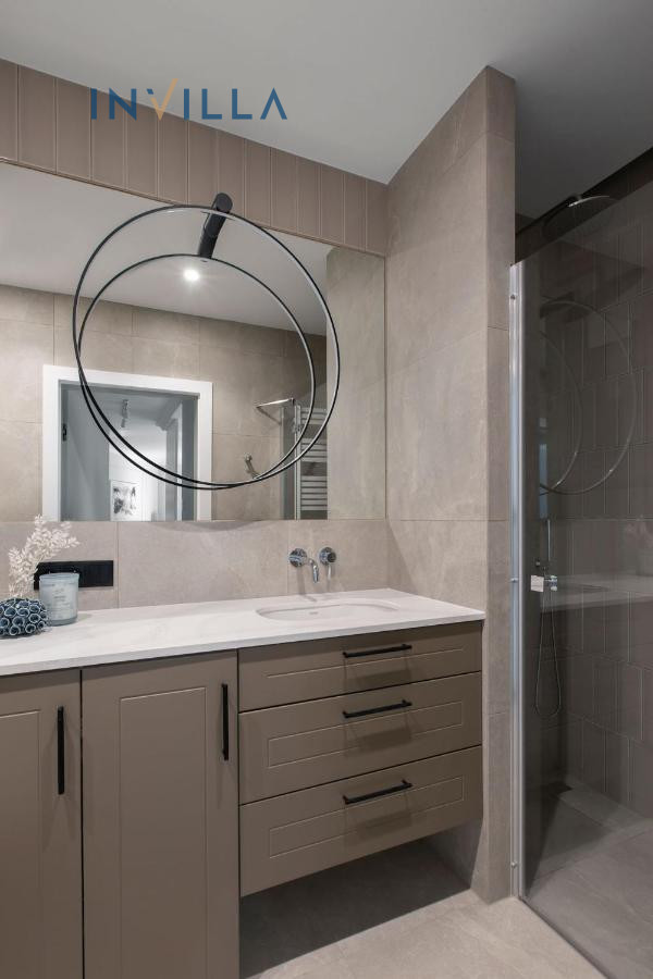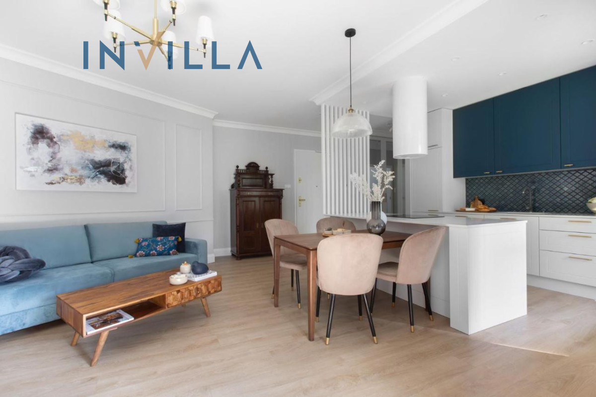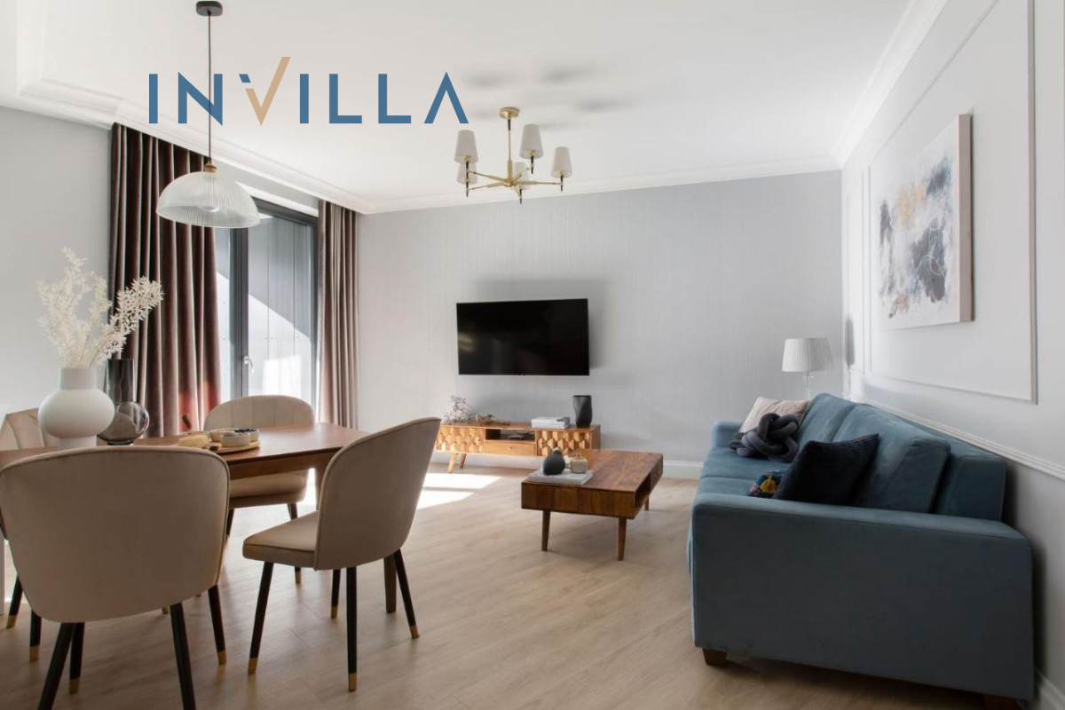 Apartament jest wyposażony we wszystkie najpotrzebniejsze rzeczy i wykończony z najlepszych materiałów w ciepłej, jasnej kolorystyce. Całość́ łączy atrakcyjnie wizualną przestrzeń z funkcjonalnością̨ i interesującym designem. Wszystkie elementy mieszkania funkcjonują̨ ze sobą w harmonii i spójnej estetyce.