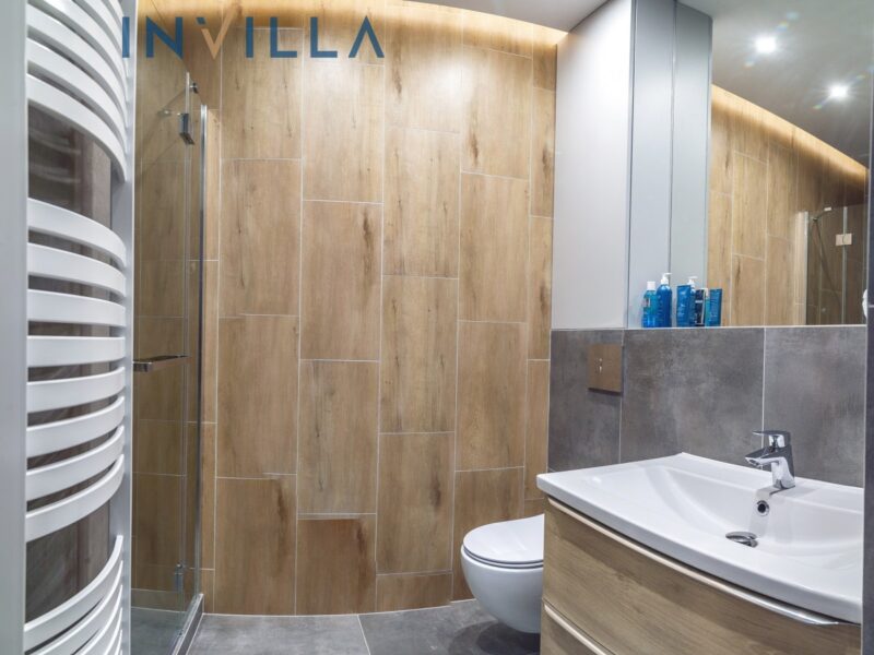 Apartament jest nowy, wyposażony we wszystkie najpotrzebniejsze rzeczy i wykończony z najlepszych materiałów. Znajduje się na pierwszym piętrze budynku.