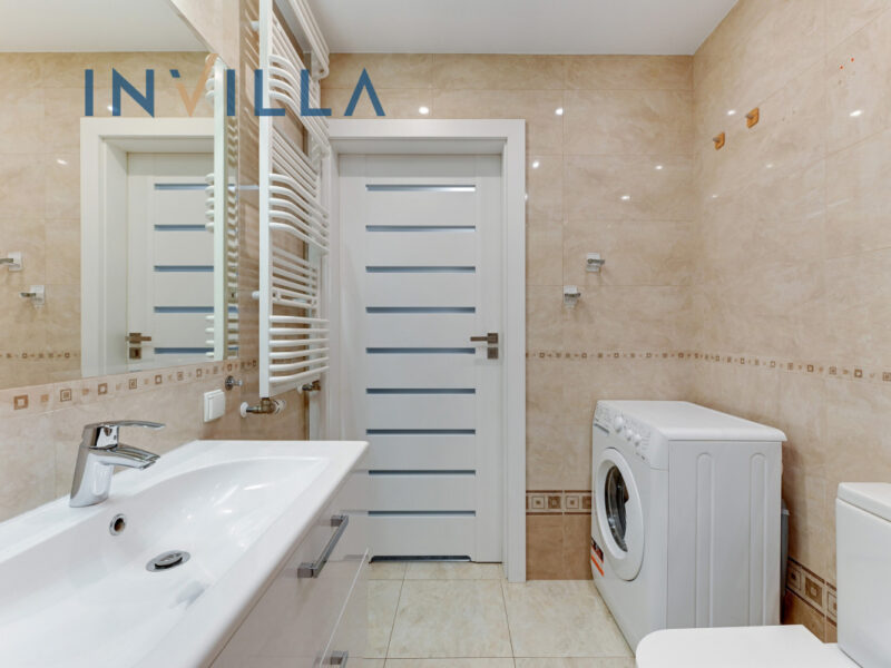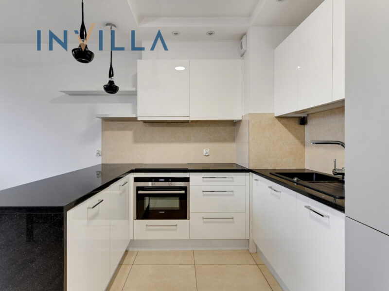 Kuchnia urządzona i wykonana na zamówienie wraz ze sprzętem AGD (zmywarka, piekarnik z mikrofalówką, płyta indukcyjna, okap, lodówka i pralka). Duże przeszklenia i zachodnia ekspozycja okien zapewniają doświetlenie w ciągu całego dnia. Do mieszkania przynależy również balkon.