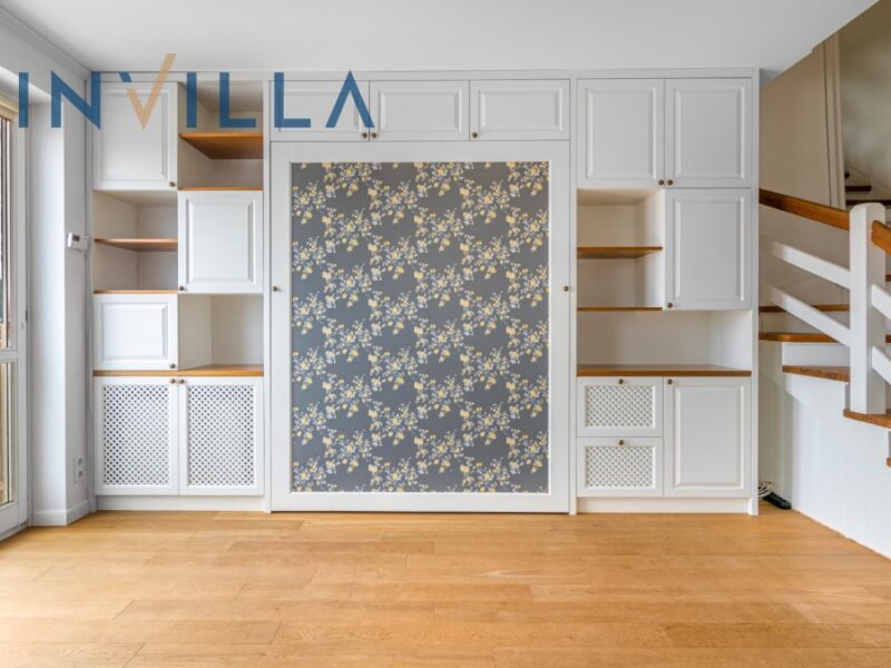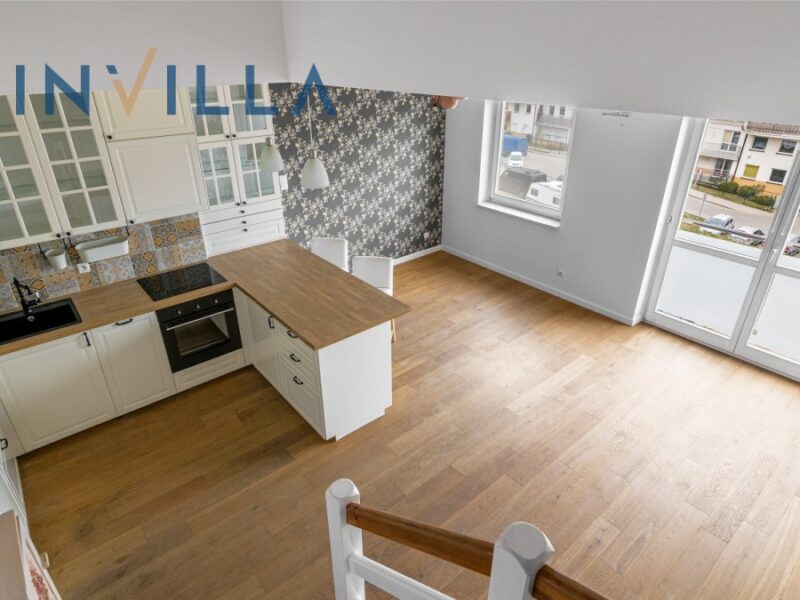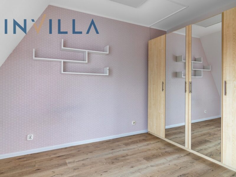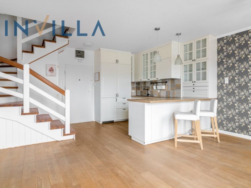 Mieszkanie jest dwupoziomowe i składa się z salonu z aneksem kuchennym, dwóch sypialni, łazienki, małej garderoby i przedpokoju. Mieszkanie jest częściowo umeblowane i całkowicie odświeżone. Poza większością potrzebnych mebli znajdziemy tutaj całkowicie wyposażoną kuchnię i łazienkę. Budynek jest ogrodzony i posiada komórki lokatorskie oraz własny plac zabaw.