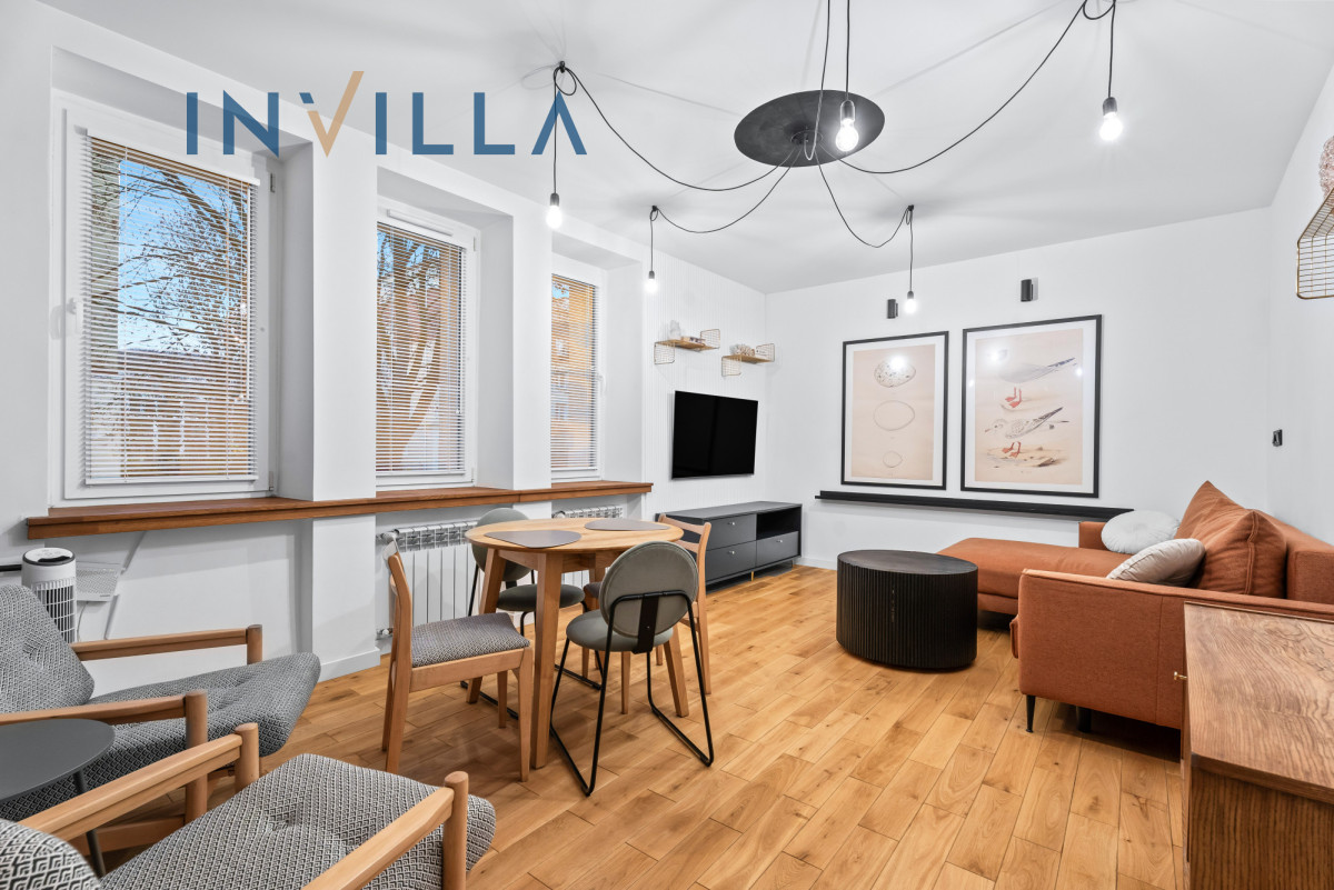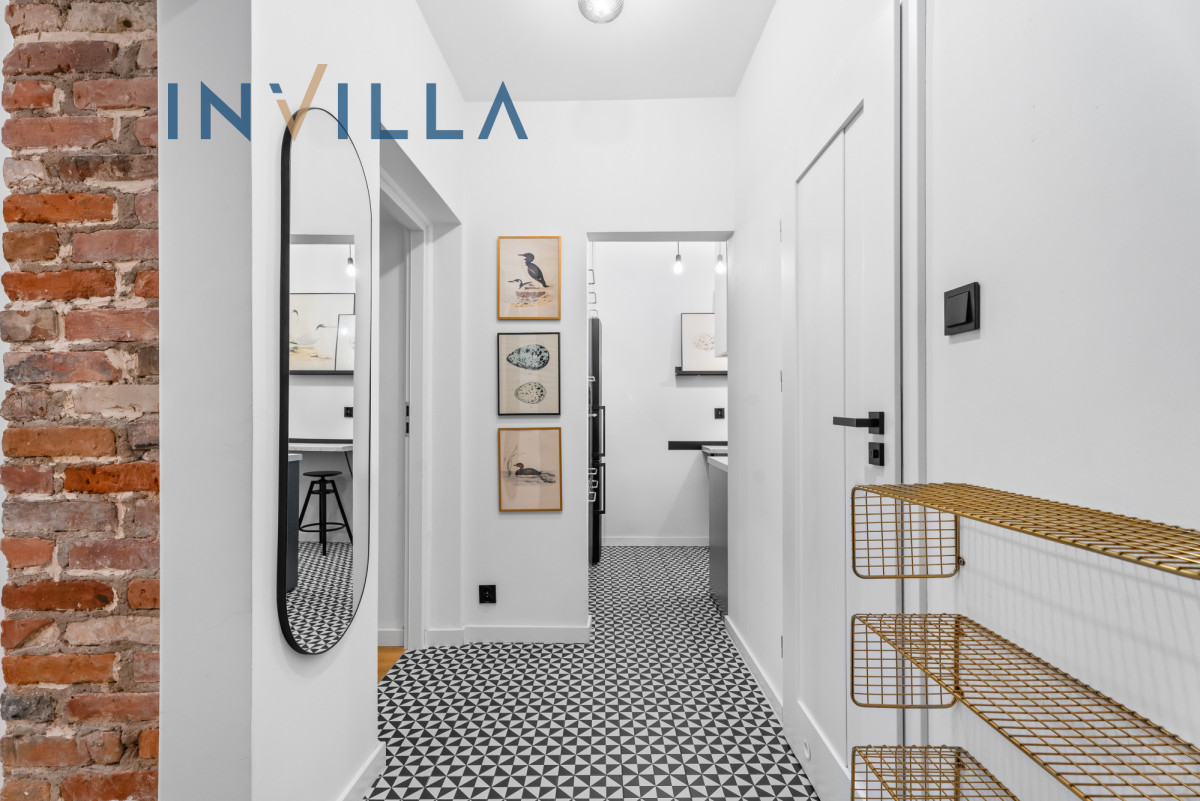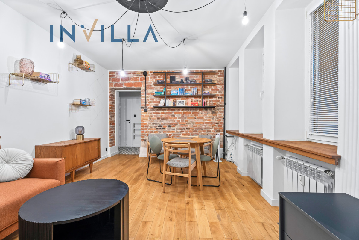 Dwupokojowe mieszkanie o powierzchni 52 metrów, położone na wysokim parterze. Całość składaj się z sypialni, salonu, osobnej kuchni oddzielonej korytarzem oraz dobrze rozplanowanej łazienki i garderoby/schowka przy wejściu. Wnętrze wykończone w bardzo klimatycznym stylu, z duzą ilością przyjemnych akcentów. Na podłogach parkiet i kafle, ściany częściowo ceglane. Dzięki dużej ilość okien wszystkie pomieszczenia są dobrze doświetlone. Aranżacje wnętrza wykonano w funkcjonalny sposób, z odpowiednią ilością przestrzeni do życia oraz pełnym wyposażeniem, w tym AGD i RTV.