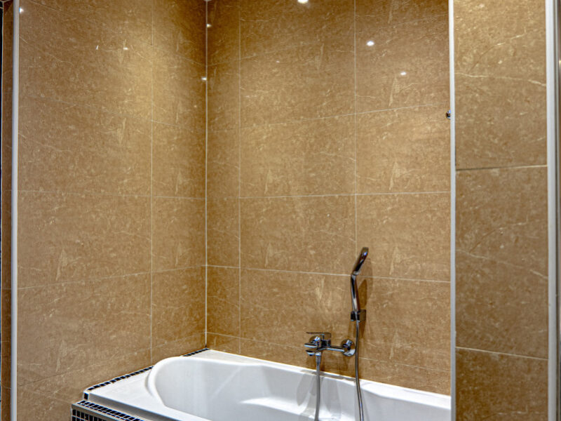 •    łazienka po remoncie – elegancka, funkcjonalna z wanną i prysznicem.