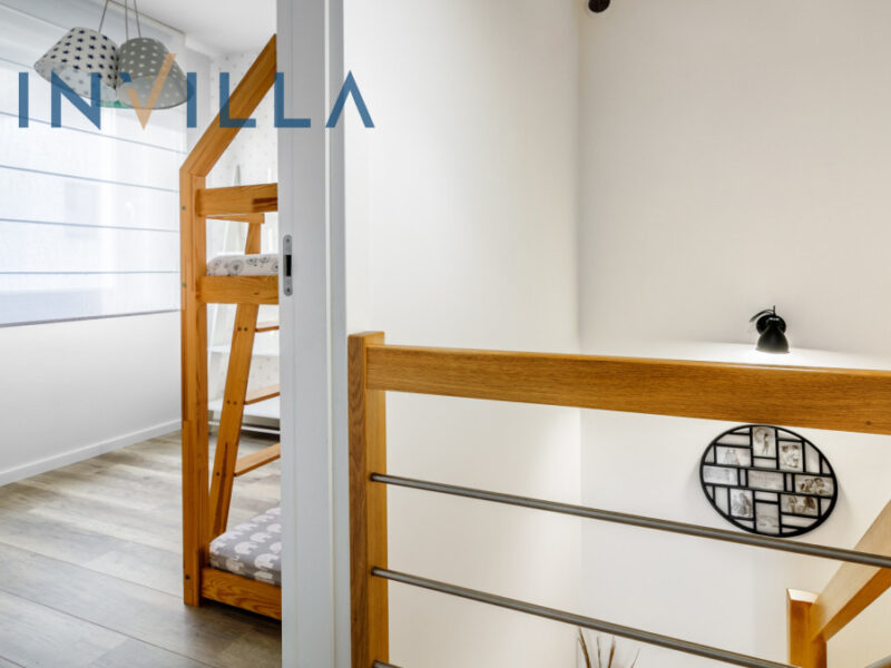Na wynajem dwupoziomowy apartament o powierzchni niespełna 84 m2 z ok. 300 m2 ogrodem na ekskluzywnym osiedlu Anchoria w Mechelinkach.