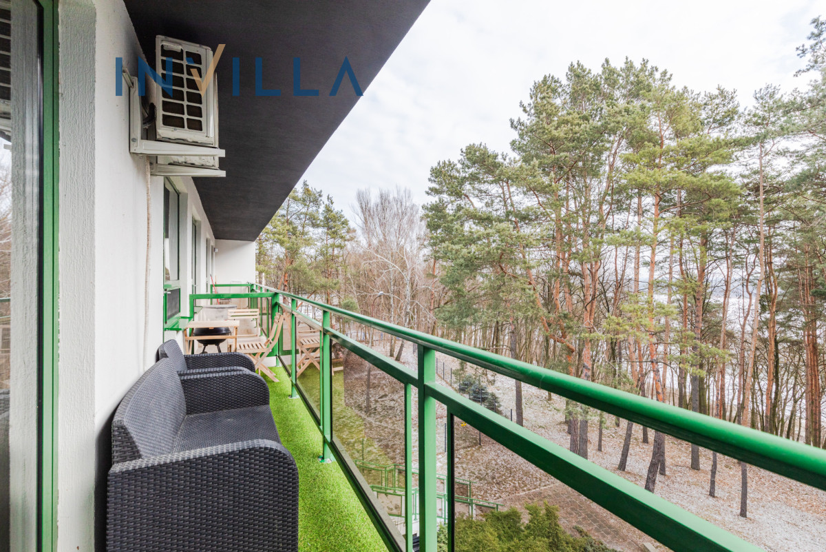 Mieszkanie o powierzchni 30 m2, w pełni umeblowane, gotowe do zamieszkania. Składa się z przestronnego salonu z wyjściem na balkon, z którego rozciąga się zapierający dech w piersiach widok na Zalew Zegrzyński, sypialni, kuchni oraz łazienki.