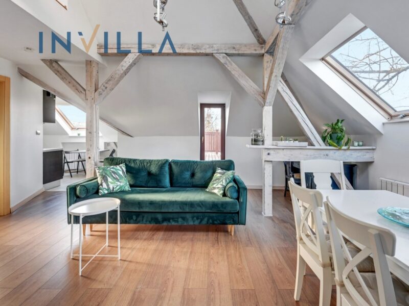 • pokój dzienny (z pokoju dziennego – wejście na antresolę) z wyjściem na przepiękny, niezwykle przestronny i doskonale nasłoneczniony taras wielkości ok.40 m2, z którego rozpościera się cudowny widok na dachy sopockich domów i kamienic