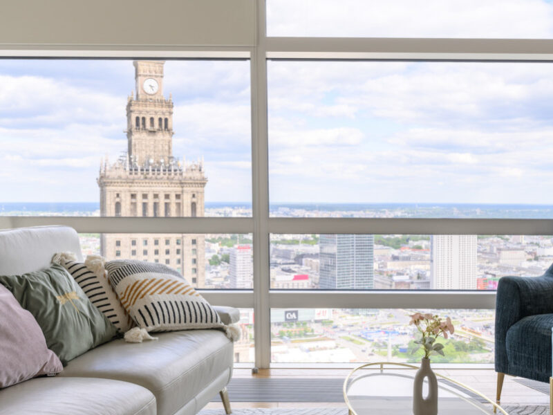 – View – Breathtaking panoramic views of the Palace of Culture and Science and the city skyline,