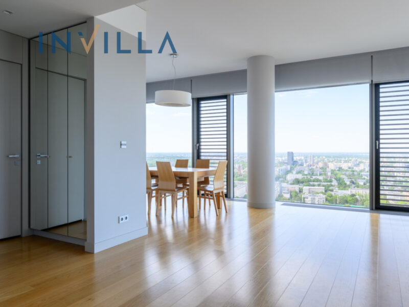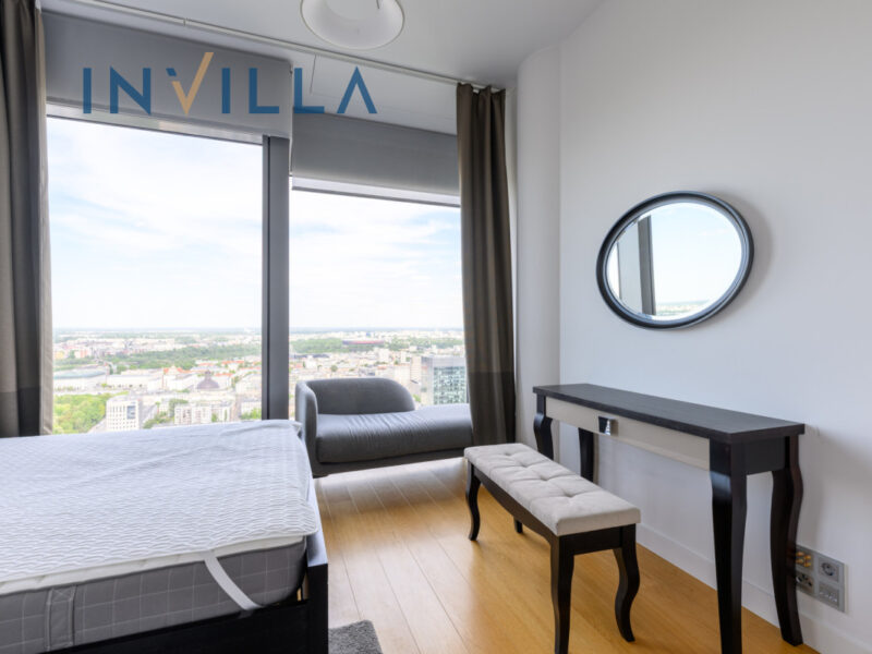 We offer for rent an exclusive 4-room apartment with an area of 135 m², located on the 35th floor of the prestigious Cosmopolitan building in the heart of Warsaw. The apartment offers a direct view of the Plac Grzybowski and the city skyline.