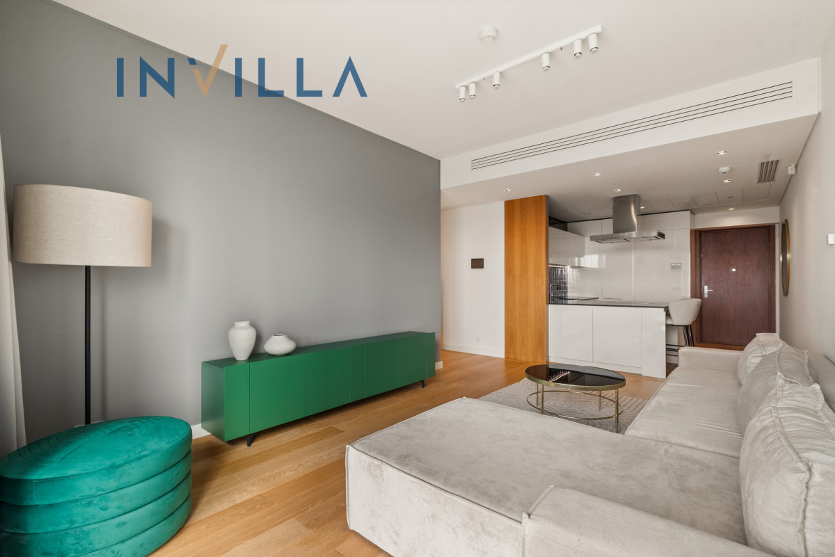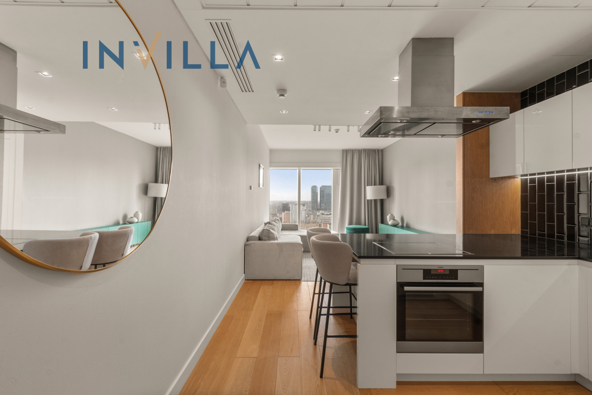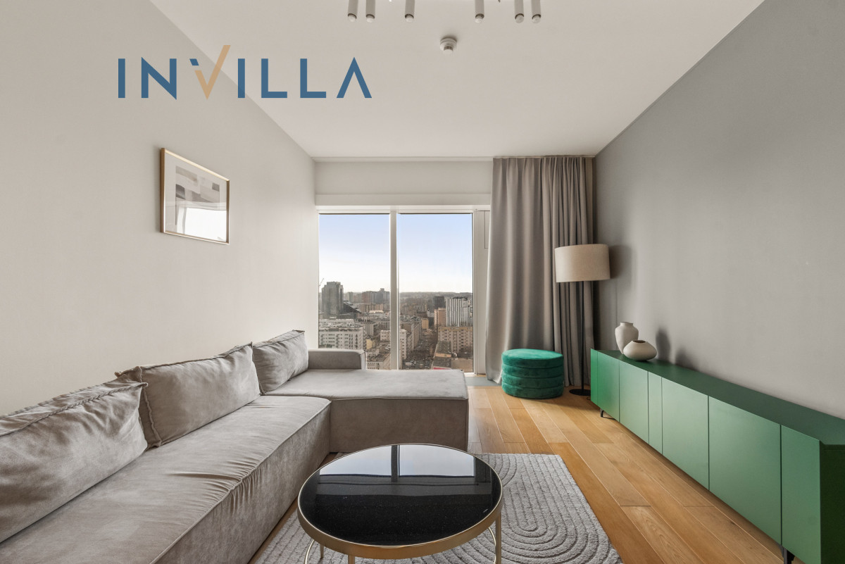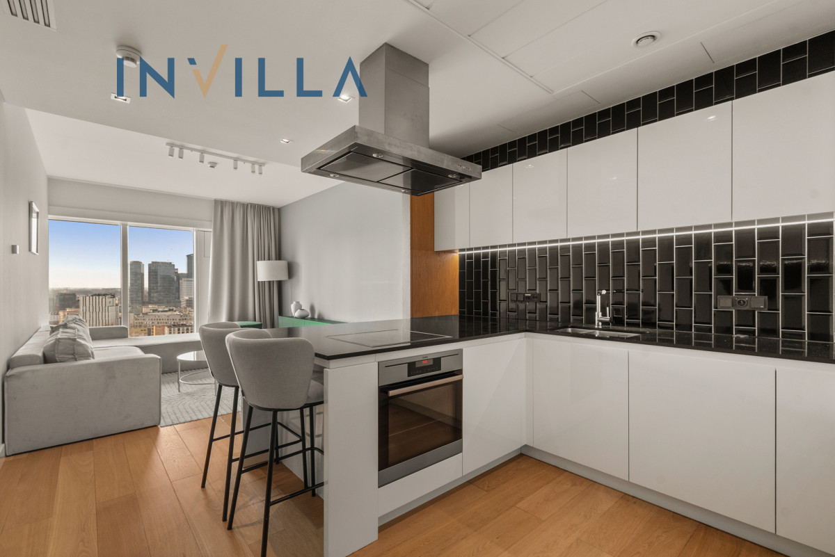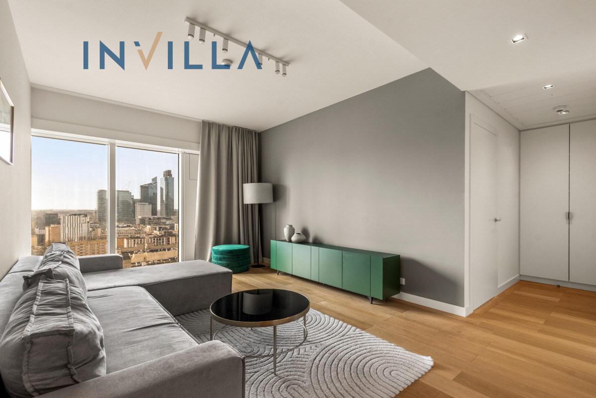A functional, one-bedroom apartment located on the 19th floor of the prestigious Złota 44, in the heart of Warsaw.