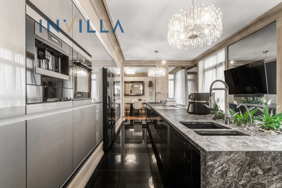 The apartment has been individually designed. The interior has been finished to a high standard using natural materials such as exotic woods, marble, and granite. Numerous joinery elements are made of solid oak.