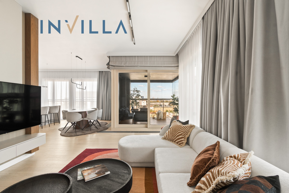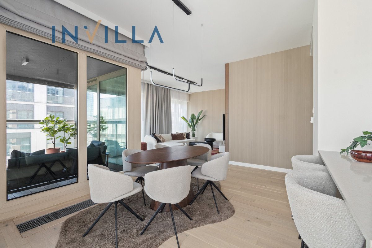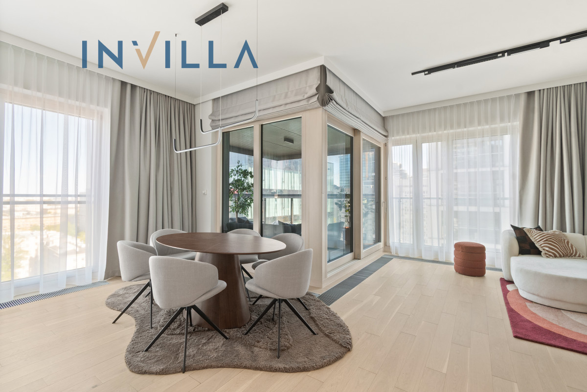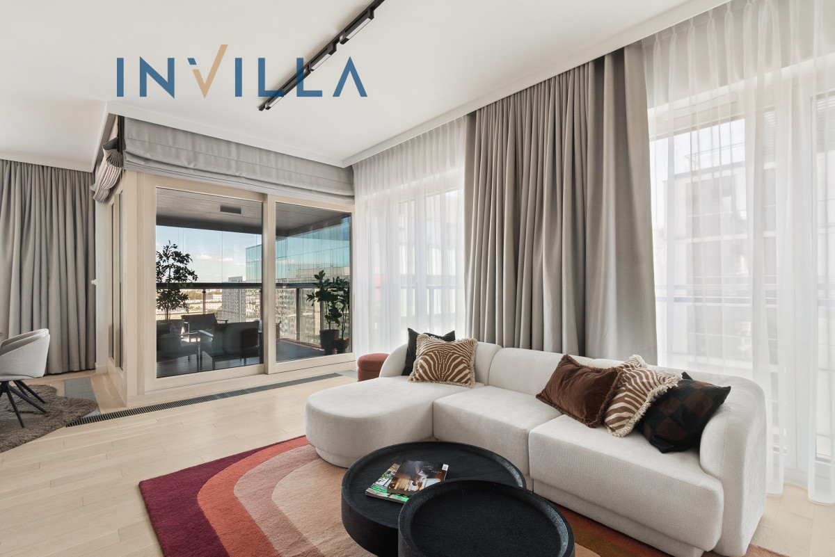 A unique, 4-room apartment with a total area of 112.24 sqm, located on the 13th floor of the prestigious Mennica Residence. The spacious terrace offers an impressive view of the Warsaw skyline, including the city’s business district.
