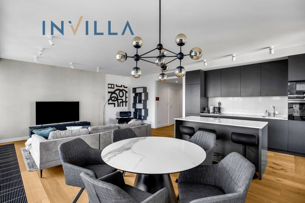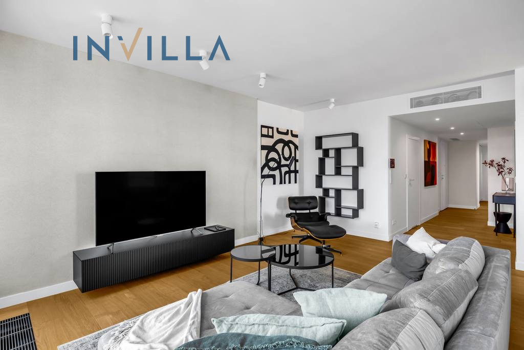 The apartment, with a total area of approximately 150 sqm, was designed by an interior architect and finished with the highest quality materials. The interiors combine elegance, modern design, and functionality. Layout: